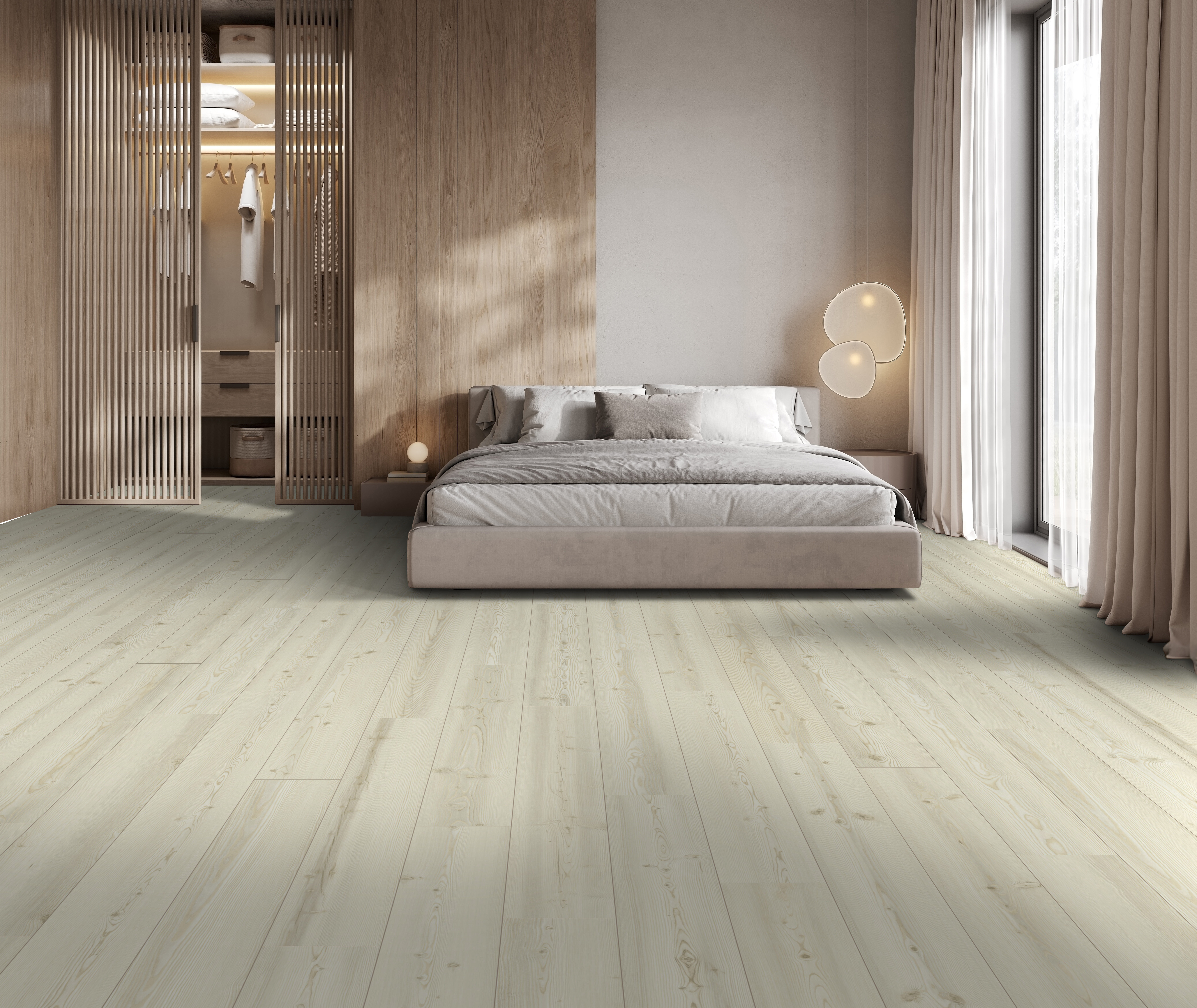 - Wide plank wood looks in natural tones